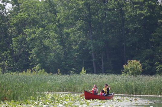 paddling through the most biodiverse region in all of Canada pairs well with the jungle-like lushness. It is one of the few spots in Niagara where you won't hear traffic! We practice some basic but focused canoe maneuvers as we weave around and under trees, which serve as excellent fish, turtle, and wetland bird habitat. We often see animals basking on these downed trees, which is great for photography opportunities. We also pause under giant, beautiful overhanging branches to rest in the shade. It is highly unlikely we would see other paddlers in this remote stretch of backwater, which implies that wildlife sightings in the forest from the perspective of your canoe should be amazing.
